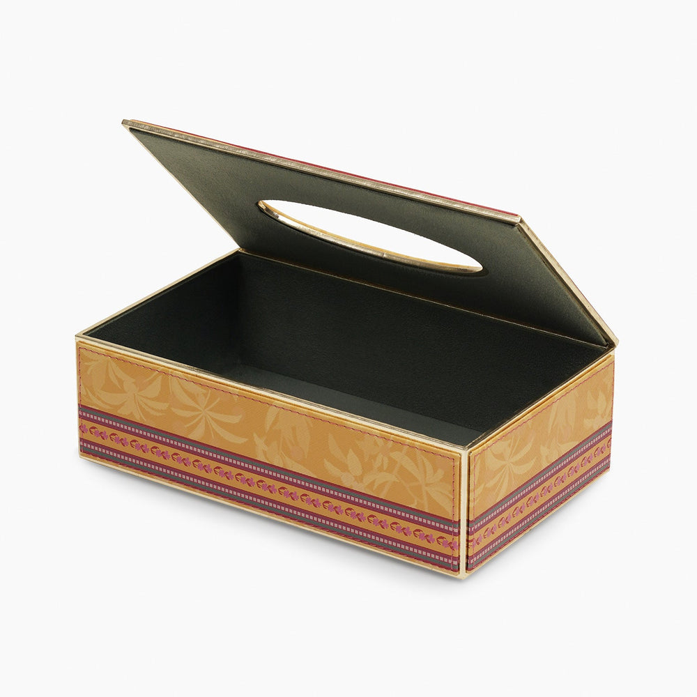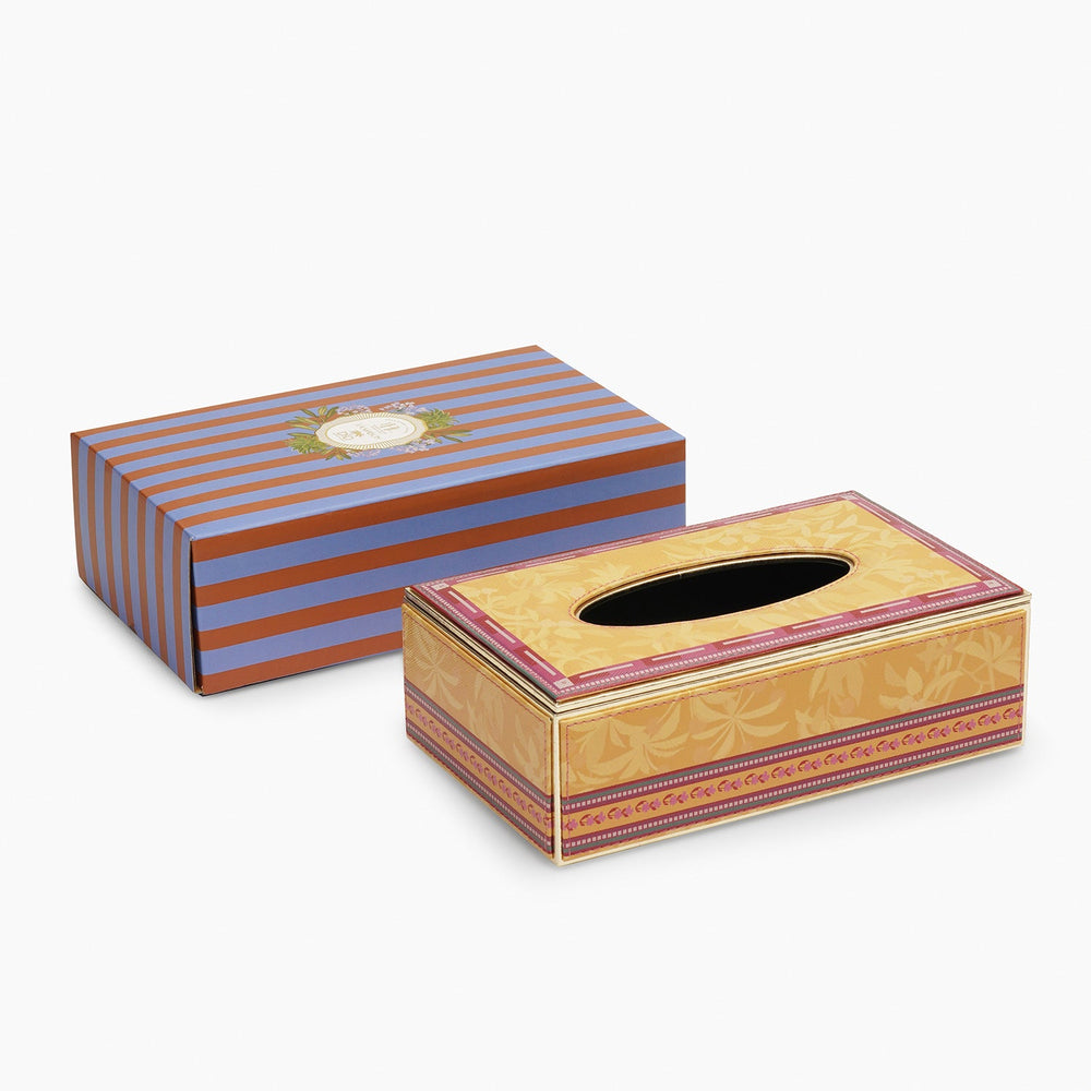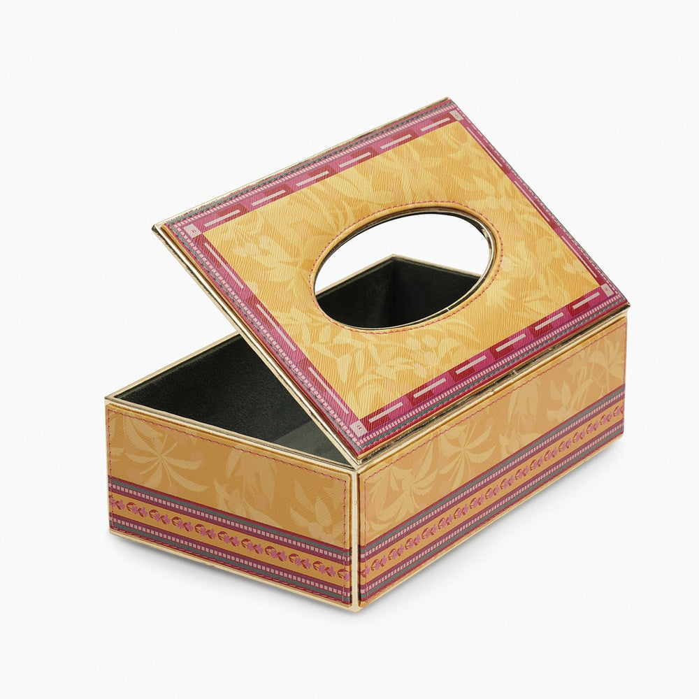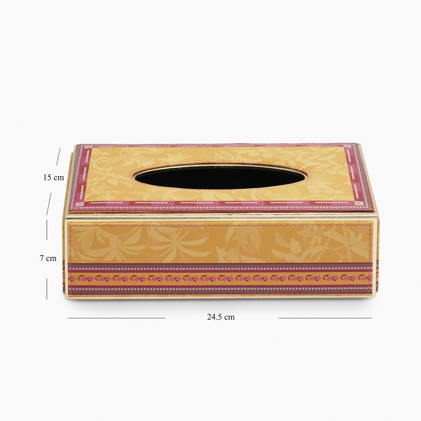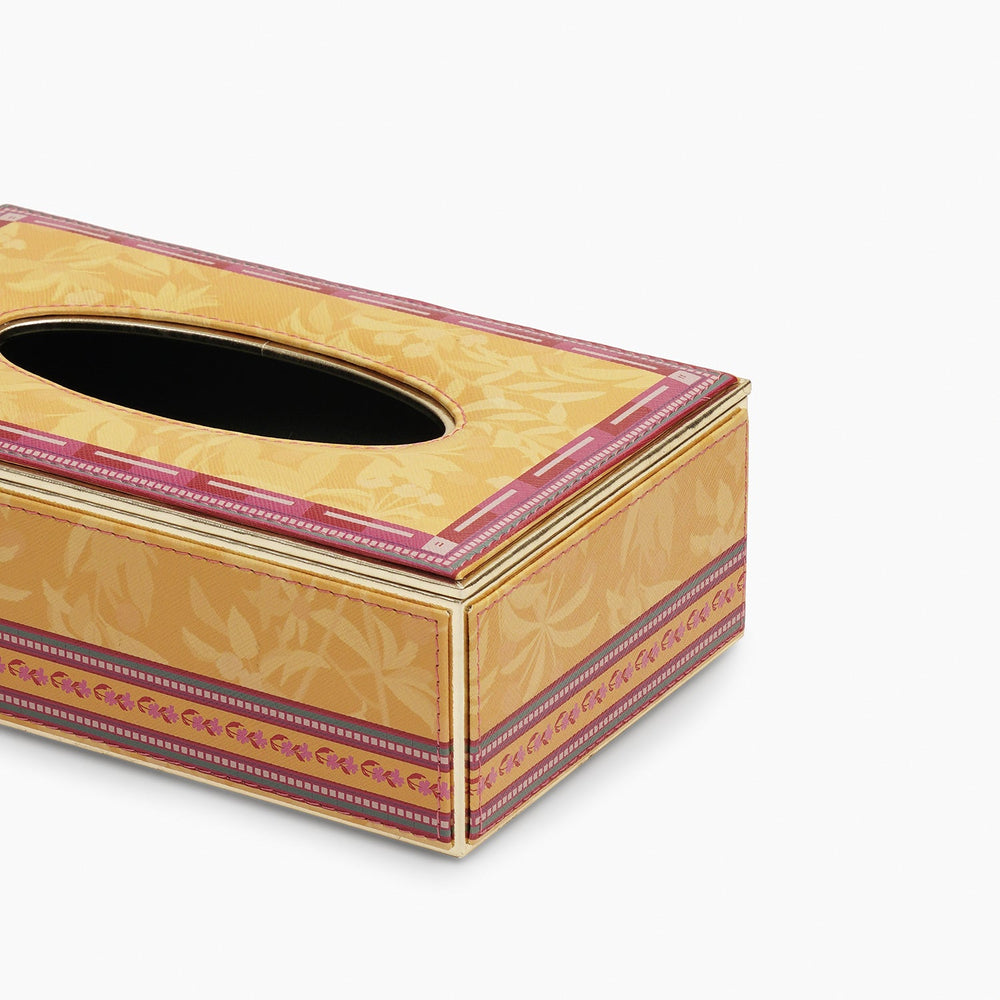 Brighten up your space with this yellow printed faux leather tissue box. Stylish and functional, it keeps tissues handy while adding a pop of colour to your decor.